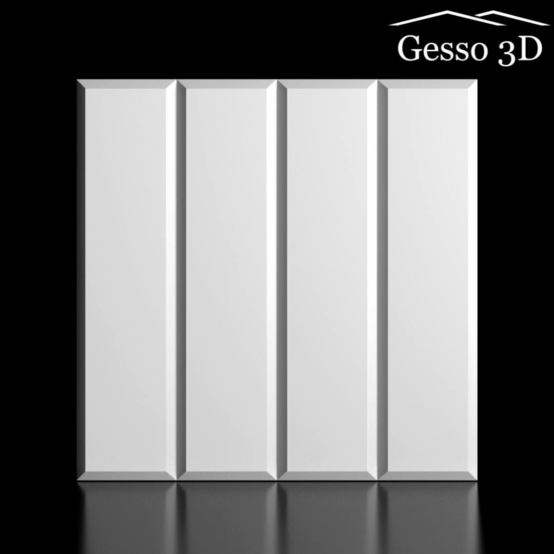 Каждая панель состоит из четырех фрагментов размером 75х300мм и имеет скошенные грани.